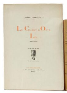 BARBEY d’AUREVILLY Jules :Le cachet d’Onyx suivi de Léa. Editions de la Connaissance Paris 1919. E.O. L’un des 50 ex de tête sur Japon impérial. Broché in-8 –