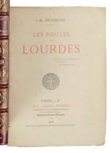 HUYSMANS J.-K. : Les foules de Lourdes. Stock Paris 1906. E.O. L’un des 10 ex de tête sur Chine. Broché in-8, témoins conservés légèrement piqués –