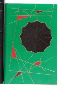 MOINAUX Jules : Le monsieur au parapluie. Marpon et Flammarion Paris 1892. E.O. (pas de grand papier). Agréable reliure in-8 plein chagrin vert printemps, plats recouverts de motifs mosaïqués or, rouges et noirs (motifs de parapluie et liserés...