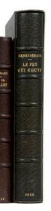 BERAUD Henri : Le feu qui couve. Les Editions de France Paris 1932. E.O. L’un des 17 ex sur pur fil, 2ème papier. Broché in-8, témoins conservés, présenté dans une belle chemise et étui demi maroquin vert foncé, dos à 5 nerfs. Très bel...