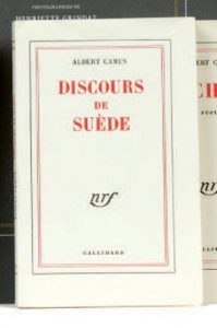 CAMUS Albert : Discours de Suède. Gallimard Paris 1958. E.O. L’un des 210 ex sur pur fil, 2ème papier. Broché in-12. Très bel état –