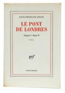 CELINE Louis-Ferdinand : Le pont de Londres. Gallimard Paris 1964. E.O. L’un des 106 ex sur pur fil, seul grand papier après 41 Hollande. Broché in-8, petite trace en pied de dos sinon bel exemplaire –