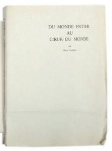 CENDRARS Blaise : Du monde entier au cœur du monde. Denoël Paris 1957. E.O. en partie. L’un des 40 ex de tête sur Hollande. Broché in-8, exemplaire à grandes marges, dos avec petit accroc sans manque, sinon très bel exemplaire de ce recueil...