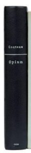 COCTEAU Jean : Opium. Stock Paris 1930. E.O. L’un des 55 ex sur Hollande, 2ème papier. Agréable reliure in-8 plein chagrin noir à bandes, dos lisse, titre au palladium, couvertures conservées (reliure signée Sophie HUREL)–