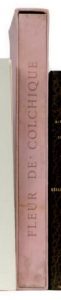 DEON Michel : Fleur de colchique. Chez l’artiste Paris 1957. E.O. L’un des 160 ex sur Rives, 3ème papier. Exemplaire signé par l’auteur et par l’illustrateur, Jean-Paul VROOM. En feuilles in-8 sous chemise et étui de papier rose. Infimes...