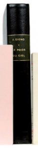 GIONO Jean : Le poids du ciel. Gallimard Paris 1938. E.O. L’un des 25 ex sur Hollande, 2ème papier. Photographies de KEROLYR. Agréable reliure grande in-8 demi chagrin noir, dos lisse, couvertures conservées (reliure signée Luchini-Chauvel) –