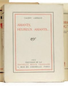 LARBAUD Valery :Amants, heureux amants NRF 23 E.O.– L’un des 108 ex de tête sur pur fil réimposés. Broché in-8, couverture jaunie –