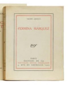 LARBAUD Valery : Fermina Marquez. NRF 27. Nouvelle Edition revue et corrigée. L’un des 109 ex de tête sur pur fil réimposés. Broché in-8 couverture jaunie et petit accroc au dos –