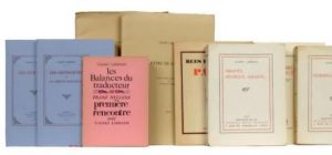 tête sur Arches), La force et l’outil.( Editions des Cendres 94. - L’un des 40 ex de tête sur Arches), Les balances du traducteur (Ed dynamo Liège 72 – L’un des 10 ex de tête sur Hollande), Rues et visages de Paris (Ed Dynamo Liège 27 – L’un des 50 ex de tête sur Arches), La femme vêtue ( Les belles lettres 70 – L’un des 120 ex sur Vélin 2ème papier), Lettre de Londres ( Les belles lettres 72 – L’un des 120 ex sur Vélin 2ème papier). Soit au total 7 volumes –