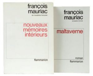 MAURIAC François : Ensemble de 2 livres brochés en E.O sur grand papier ; Maltaverne (Flammarion 72 – l’un des 30 ex de tête sur Hollande), Nouveaux mémoires intérieurs (Flammarion 65 – L’un des 110 ex sur alfa, 2ème papier). Soit au...