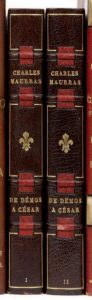 MAURRAS Charles : De Démos à César. Editions du Capitole Paris 1930. E.O. L’un des 25 ex sur Madagascar, 2ème papier après 14 Japon. Exemplaire signé par l’auteur. Vignettes de GOOR. Deux volumes parfaitement reliés in-8 demi maroquin...