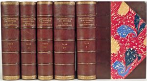 (Catalogue) - Ens. 2 catalogues en 6 vol. - [PICOT, Émile].- Catalogue des livres composant la bibliothèque de feu M. le baron James de Rothschild. Paris, Damascène Morgand [- Édouard Rahir], 1884 [- 1920]. 5 vol. in-8°; frontispice et ill....