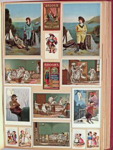 (Chromos) - +/- 850 chromolithographies. Moyenne ou petite grandeur, entièrement collées sur ff. de support (bonne condition générale). Dans 2 albums ad hoc in-f° : demi-veau rouge ou vert, plats de percaline titrés "Album" richement décorés,...