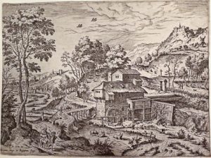 Fait partie d'une suite de 12 scènes bibliques dans des grands paysages. # Hollstein 11. ▲ Provenance : Gaston de Ramaix (cachet; # Lugt 4099).