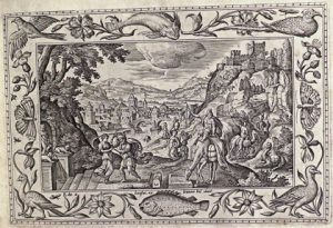 (École flamande) - COLLAERT, Adriaen (c. 1560-1618).- Suite de 24 vastes paysages animés sertis d'encadrements décoratifs [d'après Hans BOL (1534-1593)]. Antverpiae [Anvers], Éduard van Hoeswinkel, [1584 ou peu après]. In-8° oblong : 24...