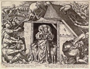 (École flamande) - GALLE, Philippe (1537-1612).- La Parabole du Bon Pasteur [d'après Pieter BRUEGHEL (c. 1525-c. 1569)]. [Anvers], Théodore Galle, 1565. Burin, cuv. 22,5 x 29,5 cm + bonnes marges (coins inf. renforcés, fixé par les coins sup....