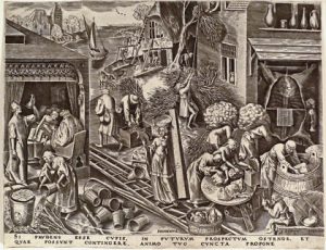 (École flamande) - [GALLE, Philippe (1537-1612)].- "Prudentia" [d'après Pieter BRUEGHEL (c. 1525-c. 1569)]. [Anvers], H. Cock, [1559-1560]. Burin, cuv. 22,3 x 29,3 cm (pli dans le bas ayant entrainé un problème lors du tirage, rogné à la cuv.,...