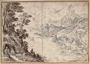 Grande composition typique de Verhaecht, maniériste dans le style de Joachim Patenier et Joos de Momper. Il travailla aussi en Italie et fut l'un des premiers maïtres de Rubens. Selon une note dactylographiée sur le passe-partout, le dessin serait signé au dos. ▲ Provenance : Lord Spencer (cachet; # Lugt 1530).