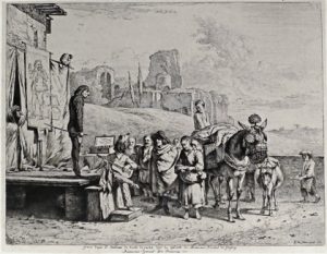 (École française) - Ens. 3 estampes - BOISSIEU, Jean-Jacques de (1736-1810).-Les Grands charlatans [d'après Karel du JARDIN (1626-1678)]. Eau-forte, 26,7 x 34,3 cm + marges (fixée par les coins sup. sur f. de support).