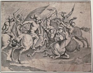 Composition dans le style d'Antonio Tempesta. Ancienne inscription "Le Brun" en haut de la feuille. ▲ Provenance : C.D. Ginsburg (cachet; # Lugt 1145); Gaston de Ramaix (idem; # Lugt 4099).