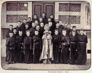 (Belgique) - 800e anniversaire de N.-D. de Wasmes. 1095-1895. Du 2 au 9 juin 1895. Mons, Photographie Stalport, 1895. 15 photos, 22 x 17 cm, sous ff. à fenêtres spécialement imprimés pour l'événement (rouss.). Pet. in-f° : demi-chagrin noir à...