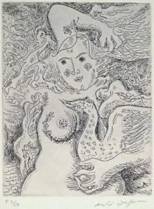 Édition illustrée de 3 lithographies originales et de nombreuses reproductions d'oeuvres en noir ou en couleurs. Tirage à 700 ex. dont 50 de tête, un de ceux-ci (n° F2) accompagnés de : - 1 eau-forte ("La Léda aux trois perles"), - 1 lithographie originale ("La Dame du soleil"), - 1 suite des 3 lithographies (bords lég. jaunis) reliées dans l'ouvrage. Enrichi d'une lithographie en noir, 24 x 19 cm, signée et justifiée 45/150. Ces estampes sont présentées sous 2 chemises à part.