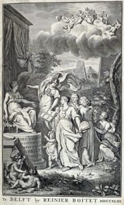 Eerste volledige uitgave (het 1ste deel was reeds in 1726 verschenen maar kreeg niet onmiddelijk het geplande vervolg) van dit belangrijk verklarend iconologisch woordenboek der antieken, naar o.m. Cesare Ripa en Horus Apollo, ingeleid door een gegraveerde titel en een dito opdracht aan Willem Vlaardingerwoud, geïllustreerd met 351 vignetten door F. Ottens en J.C. Philips. Hubert K. Poot (1689-1733), een boerenzoon uit Abtswoude, was niet alleen tabakshandelaar te Delft, maar tevens auteur van poëziestukken en tekstbezorger voor de uitgever Boitet aldaar. # Praz 461 ; # Landwehr 681. fl Édition originale de ce dictionnaire iconologique donnant les interprétations de plus de 1.200 emblèmes égyptiens, grecs et romains sur 351 grandes vignettes. Demi-veau de l'ép. (faible tache en haut des prem. ff. du 3e vol., plats de papier marbré moderne, gardes renouvelées).