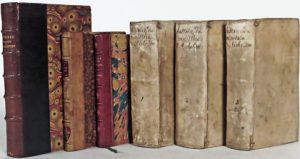 [VIALART, Ch.].- Histoire du ministère d'Armand Jean du Plessis, cardinal duc de Richelieu [...]. Amst., Wolganck, 1664, 3 vol. in-12° plein vélin (incomplet du portrait de Richelieu). # Willems 1730.— [BAYLE, P.].- Ce que c'est que la France toute catholique, sous le règne de Louis Le Grand. Saint-Omer, L'Ami, 1686, in-12° relié par Hourlier en demi-veau rouge à grains longs à coins. Monogramme sur maroquin non identifié.— COURTILZ de SANDRAS, G. de.- Mémoires de Mr. L[e] C[omte] d[e] R[ochefort] contenant ce qui s'est passé de plus particulier sous la ministère du cardinal de Richelieu, et du cardinal Mazarin, avec plusieurs particularitez remarquables du règne de Louis Le Grand. Troisième édition [...]. La Haye, Van Bulderen, 1689, in-8° demi-maroquin brun du 19e s.— VOLTAIRE.- La vie privée du roi de Prusse. Ou Mémoires pour servir à la vie de Mr. de Voltaire, écrits par lui-même. Amsterdam, Rey, 1789, in-12° demi-veau à coins du 19e s. Portrait de Frédéric II en frontispice.