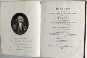 (Méditerranée, Égypte) - WILSON, Robert Thomas.- History of the British expedition to Egypt [...]. London, printed by C. Roworth and sold by T. Egerton, 1803. In-4° : front.-xxi-[3]-387 pp.; 6 plates (some plates slightly browned, rare foxing,...