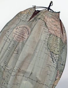 (Globe) - [VERNE, Jules] De Elsevier-globe naar de nieuwste bronnen bewerkt door Dr G.J. Dozy. Rotterdam, Elsevier, [1880]. Kleurendruk op linnen, gemonteerd op metalen baleinen die openen als een dubbele paraplu, gesloten +/- 73 x 6 cm, geopend...