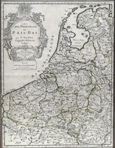 2e état (1 er état : 1676). # van der Heijden 156. Joint : BOwEn, E.- A new and accurate Map of the Seven United Provinces compiled from the most approv[e]d Maps & Charts, and adjusted by astronom[ica]l Observations. Eau-forte, cuv. 31,8 x 22,4 cm. Sous passe-partout, vitre et cadre de bois peint en gris; # pas dans van der Heijden.