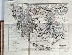Quatrième édition (éd. orig. : 1788) de l'atlas seul, précédé d'une analyse par JeanDenis Barbié du Bocage. Sans la carte générale de la Grèce et ses colonies publiée seulement en 1811. # Brunet I-674; # de le Court 987 (éd. 1789); # Chadenat 4189 et 5890 (éd. de 1790 du Voyage); # pas dans Cohen.