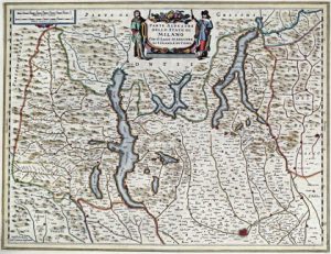 (Europe, Italie) - JANSSONIUS, Joannes.- Parte alpestre dello Stato di Milano con il Lago Maggiore, di Lugano et di Como. [1652-1658]. Gravure sur cuivre, TC 37,8 x 49,2 cm + grandes marges, rehaussée à l'aquarelle.