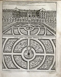 Zeldzaam werk (1ste uitg. : 1669) dat uit 6 delen met elk een apart titelblad bestaat. In de 1ste twee delen behandelt Jan van der Groen (1624-1671), hofhovenier van de Prins van Oranje, het ontwerp en de aanplanting van tuinen voor landhuizen en kastelen. Deze stukken zijn rükelük geïllustreerd met houtsneden voorstellende perspectiefzichten en plattegronden van tuinontwerpen, afbeeldingen van fonteinen, zonnewijzers, bloemperken, labyrinten, latwerken en lustprielen. In de 4 andere delen bespreekt de medicus Pieter Nylandt de bedrijvigheid tijdens de 12 maanden van het jaar (planten en oogsten van groenten, fruit, kruiden...), de heilzame werking van de gewassen, de bereiding van genees- en heelmiddelen voor mens en dier en de bijenteelt, om te besluiten met keukenrecepten, instructies voor het slachten en het bereiden van confituren. # Cat. Forum, Historical gardens, n° 129; # Berlin Kat., n° 3392 & 3393 (uitg. van 1669 et 1672); # Images de jardins du XVIe au XXe s. [...]. Namur, BUMP, 1996, p. 95, n° 20 (uitg. van 1675); # niet in Landwehr (Ned. kookboek), noch in Garrison & Morton, Bibl. Walleriana, Nissen, Pritzel, Plesch. fl Rare ouvrage dont les 2 premières parties traitent d'architecture et d'ornementation de jardins et dans lesquels le jardinier du Prince d'Orange donne des explications sur de nombreuses plantes, des notes sur les cadrans solaires, etc. Les autres parties sont l'oeuvre du médecin Nylandt et concernent entre autres l'apiculture et la médecine vétérinaire. Plein parchemin de l'ép. (manquent les pp. 5-8, défauts, rel. défrafchie).