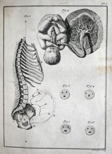 Eerste uitgave van deze handleiding over verloskunde door de Vlaamse professor Jacobs (1734-1790), met beschrijvingen van de anatomie van de zwangere vrouw, de bevalling en de mogelijke complicaties die kunnen optreden. Geïllustreerd met 21 verhelderende koperplaten (waarvan 2 uitslaand) door P.J. Tiberghien en J.L. Wouters. # Vanderhaeghen iV-6510 (vermeldt verkeerdelijk 28 platen); # Wellcome III-339; # Sondervorst 141; # Nuyens I-338; # niet in BB, Garrison & Morton, Bibl. Walleriana. ▲ Herkomst : Land van Aalst, 18de eeuw (supra libros; # de Jonghe d'Ardoye, p. 479); parochie van Volkegem (ingebonden blad). fl Édition originale de ce manuel d'obstétrique illustré de 21 planches. Rel. de prix en plein veau armorié (pet. restauration au dos).