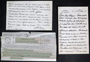Remerciements du Président de la République fran çaise pour l'envoi d'une corbeille de fleurs à l'occasion du mariage de sa fille Antoinette et présentation de ses condoléances suite au décès du père d'H. Ficq. Joint : Télégramme du même au même, 18-09-1897 : invitation à une chasse dont les détails seront donnés lors du dïner à l'Elysée ou le couple Ficq est attendu le lendemain.