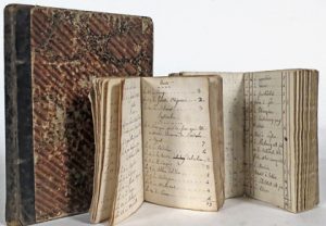 (Militaria, France) - MERCIER, Charles.- 3 carnets (de marche ?) méticuleusement tenus par "Charles Mercier, Musi ci en au 51me régiment De Ligne". Circa 1800. 2 carnets br. in-16° + 1 cahier in-8° demi-cuir, plats de papier (rel. us.).