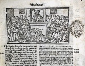 Very rare edition of Aristotle's "Physics", with extensive commentary of Thomas Aquinas (1st Giunta ed. : 1535). Translated by Joannes Argyropoulos (c. 1393-1487), Byzantine exile Greek professor in Florence and Rome and edited by Bartolomeo de Spina (1475-1546), papal Dominican scholar. Illustrated with 1 large figurative woodcut (showing the Triumph of Thomas Aquinas over Averroes) and 57 schematic woodcuts in the text. Nice typography on two columns with numerous initials; large printer's device on the title-page and on the last numbered leaf. # Camerini 423; # not in Adams, Machiels, Mortimer, Soltész, STC Italy. ▲ Provenance : Biblioteca Porziuncola, Franciscan library at Assisi (stamps); Alexandrius Quadrius (handwritten mention). fl Rarissime édition de la "Physique" d'Aristote avec les commentaires de Thomas d'Aquin, donnée par de Spina. Belle édition ornée d'1 grand bois figurant le triomphe de Thomas d'Aquin sur Averroës et de 57 bois in texto. Plein veau moderne (pet. gal. de vers marg.).
