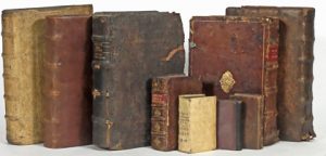 Dont : WITZEL, G.- Postilla, hoc est enarratio epistolarum et evangeliorum de tempore et de sanctis per totum annum. Quentel, 1557, in-f° plein veau.— WILD, J.- Jobi historia. Christlich und Nützlich predig wess aussgelegt darinnen nicht alleyn nötige vermanung zur gedult, sonder auch Catolische. Meyntz, Behem, 1558, in-f° plein veau. Relié avec, mêmes lieu d'éd., éditeur et date : HIPPARIUS, Ch.- Die allerhenligste Historia der Passion unsers lieben Herren und Heylandts Jhesu Christi.— PAULUS DIACONUS.-Homiliae, sive Conciones praestantissimorum ecclesiae catholicae doctorum. Cholin, 1569, in-f° plein veau.— BLOIS, L. de.- Opera. Cholin, 1589, in-f° pleine peau de truie estampée à froid.— ISSELT, M. von.— Paradisus precum, ex R.P.F. Ludovici Granatensis spiritualibus opusculis. Calenius & Quentel, 1589, in-12° plein veau.