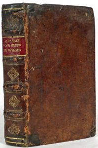 CROON, Pieter.- Almanach voor heden en morghen ende daer op vermaeckelijcke uyt-legginghen met gheestelijcke bemerckinghen voor een nieuw-jaer. t' Antwerpen, Cornelis Woons, 1665. In-8° : 369 (op 371)-[4] pp. (gegrav. titel ontbreekt, f. A6 kort...