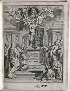 PHAEDRUS.- Fabularum Aesopiarum libri V. Notis illustravit in usum serenissimi principis Nassauii David Hoogstratanus [...]. Amstelaedami [Amsterdam], ex typographia Francisci Halmae, 1701. In-4° : [32 dont titre gravé]-160-[84] pp.; 19 h.-t. (qqs...