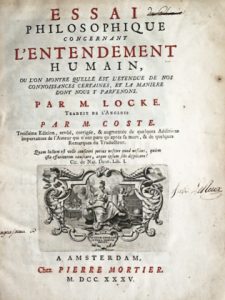 (Philosophie) - LOCKE, John.- Essai philosophique concernant l'entendement humain [...]. Troisiéme édition, revüë, corrigée, & augmentée de quelques additions importantes de l'auteur qui n'ont paru qu'après sa mort, & de quelques remarques du...