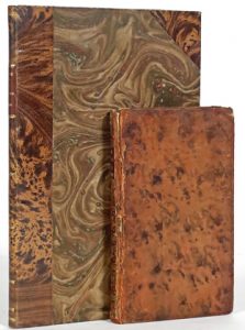 Ens. 2 ouvr. - [VOLTAIRE].- La guerre civile de Genève, ou Les amours de Robert Covelle. Poème héroïque. Avec des notes instructives. Bezançon, Nicolas Grandvel, 1768. In-8° (H. : 207 mm) : xvi-68 pp. Rel. 1re moitié 20e s. : demi-basane...