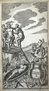 GALLONIO, Antonio.- De SS. Martyrum cruciatibus liber. Quo instrumenta & modi quibus iidem Martyres olim torquebantur, simul perspicuè descripta, & tabulis aeneis accuratissimè expressa sunt. Antverpiae, sumptibus Andreae Frisi, 1668. In-12° : [24...