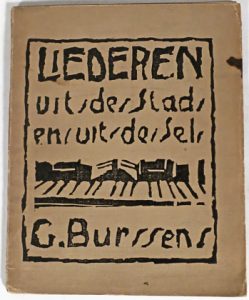 Eerste uitgave van de derde verzenbundel van de expressionistische dichter Gaston Burssens (1896-1965). Omslag en 3 illustraties in linosnede door de auteur.