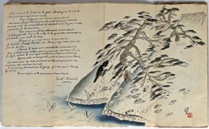 Édition originale illustrée par Audrey Parr sur les indications de Claudel ainsi que d'un grand dessin de Keisen Tomita et d'un titre par Noemi Pernessin, le tout gravé sur bois par un artiste japonais à Tokyo. Ex. du tirage courant sur papier höcho (n° 263).