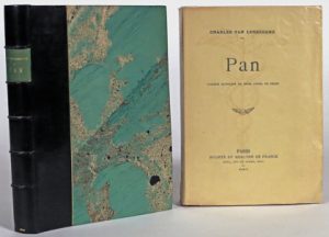 VAN LERBERGHE, Charles.- Pan. Comédie satirique en trois actes, en prose. Paris, Société du Mercure de France, 1906. In-12° (1ers ff. brunis). Broché. Sous chemise en demi-chagrin noir et dos à nerfs, sous étui bordé par Vladimir Tchékéroul.