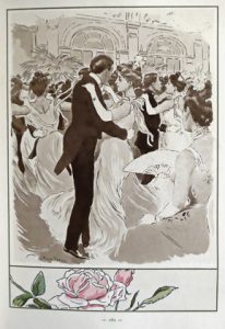 Édition originale de cet ouvrage divisé en 24 parties faisant défiler "au cours de 24 heures [...] sous nos yeux les scènes si diverses de la vie parisienne de chaque jour : lever avec les balayeuses, les porteuses de pain, les ouvrières et demoiselles de magasin tandis que les bourgeoises, revenant du bal, émergent de leur lit et vont se préparer toute la journée pour leur soirée". Belle illustration composée de 97 aquatintes avec traits d'eau-forte : composition gravée en couleurs au repérage sur le plat sup. de la couv. et 96 gravures en noir ou sépia (1 bandeau, 2 hors-texte et 1 cul-de-lampe en médaillon pour chacune des 24 parties). Chaque page, y compris les hors texte, est sertie d'un filet vert olive avec jolie composition florale au pochoir dans la partie supérieure ou inférieure, soit 150 frises. Le texte est imprimé en gris-vert. Tirage à 250 ex. num., un des 220 sur vélin du Marais fabriqué spécialement pour cet ouvrage (n° 46). Enrichi d'un volume in-4° de suites, montées sur onglets dans un vol. en même reliure que l'ouvrage, contenant les 97 gravures de l'ouvrage en 242 états divers, avec remarques et états justifiés par l'artiste (état définitif souvent signé en sus), sur papier fin filigrané MB ou papier plus fort filigrané Perrigot de grand format in-4°, ce dernier étant réservé à l'état définitif. La couverture et les culs-de-lampe ne sont qu'en un seul état (eau-forte pure), les autres gravures étant généralement présentées en 3 états (parfois jusqu'à 5). • Ensemble exceptionnel.