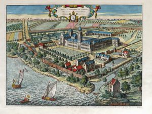 Extraites de la "Chorographia Sacra Brabantiae" de Sanderus, 18e s. : le couvent des Frères Mineurs, le collège des Augustins et les abbayes de Saint-Michel, Saint-Sauveur (Pierre Pot) et Saint-Bernard-sur-l'Escaut (Hemiksem).