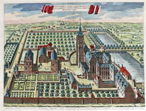 Extraites des éditions de la "Chorographia Sacra Brabantiae" de Sanderus, 17e ou 18e s. : les abbayes des Prémontrés (ou Norbertins) de Dielighem, Heylissem et Grimbergen (2 différentes).